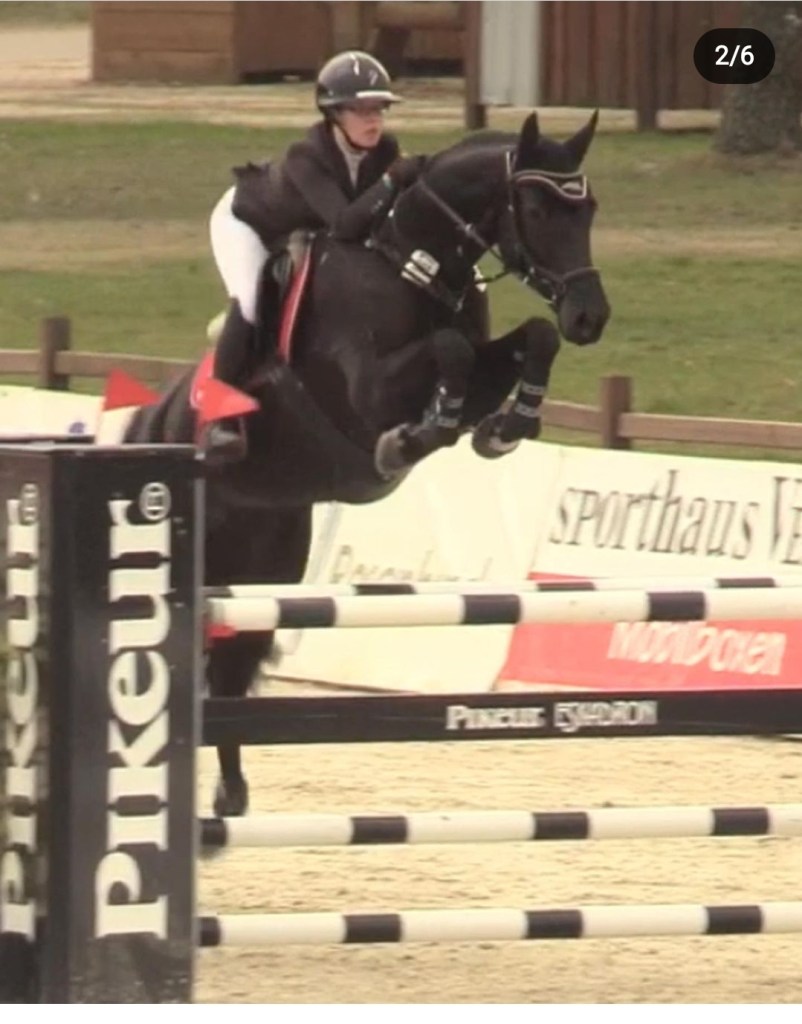 een gitzwarte Holsteiner merrie geboren 2014. Zij heeft 1.40 Internationaal gesprongen. En komt uit een geweldig goede stam. Alle merries in haar moederlijn hebben zelf top gepresteerd en hun nakomelingen ook. Zij zal volgend jaar een veulen krijgen van Nashdaq Z